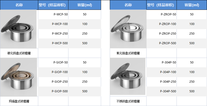 研磨盘材质: 碳化钨 | 氧化锆 | 玛瑙 | 不锈钢等可选
