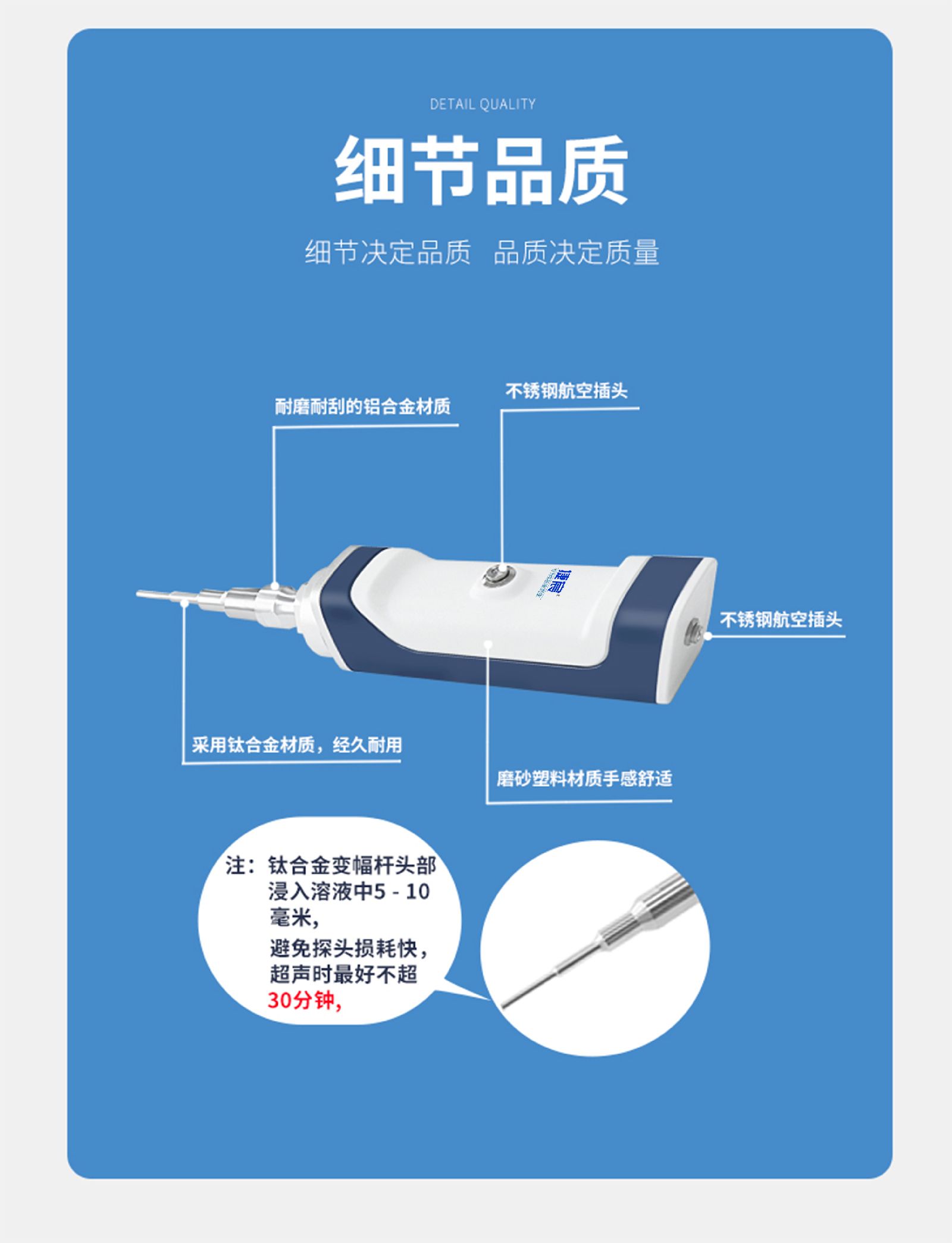 ■ 超声探头采用TC4材料制作,具有强度高,声速高,耐蚀性好,耐热性高等特点